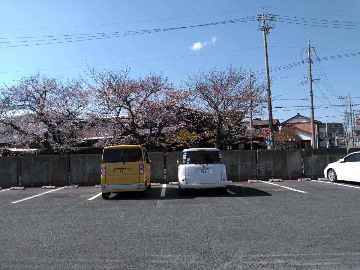 今日のテーマは「桜を描く」で、先日開花の状況を見がてらウオーキングしたアイプラザ前の桜並木が予定されていたが、あいにく今日は冷たい風が吹いていてとてもスケッチどころではなさそうだった。建物の裏側の駐車場のほうはあまり風が来ないようだったので、急遽駐車場周辺の桜に変更された。